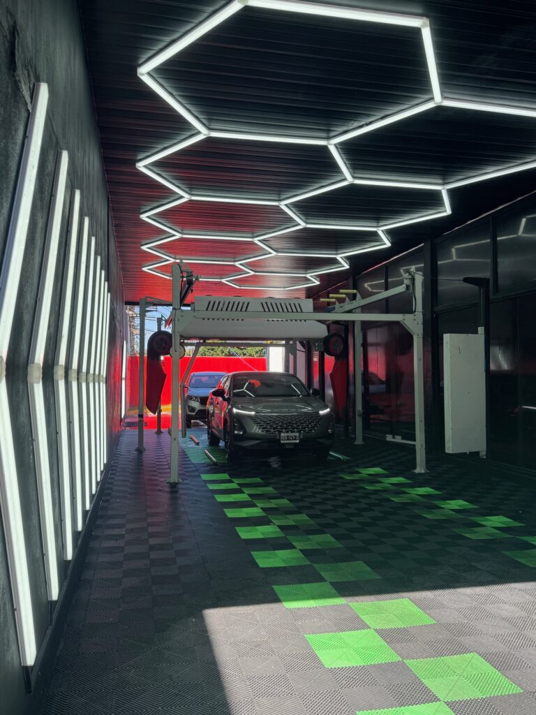 Miren, la cosa está así: Tu llegas, pides el servicio que quieras (hay varios paquetes y están súper accesibles), de ahí tu vas llevando tu auto por el tunel donde está está máquina súper tecnológica donde pasará por el proceso de lavado, encerado, secado y sin tocar el auto. Le dicen sistema Toucless.